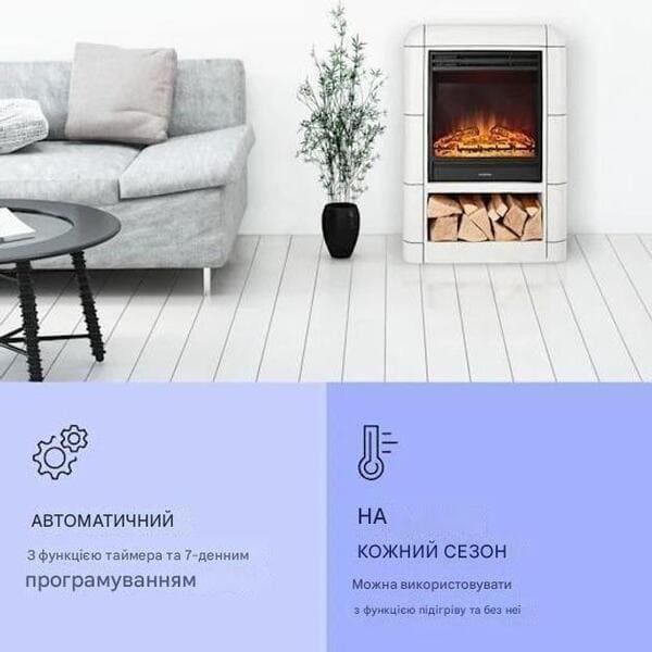Електричний камін Dukono 1800 Вт зі світлодіодним полум'ям, вентилятор, обігрівач, таймер, дров'яний відсік