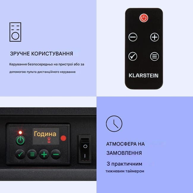 - Керування безпосередньо на пристрої або за допомогою пульта