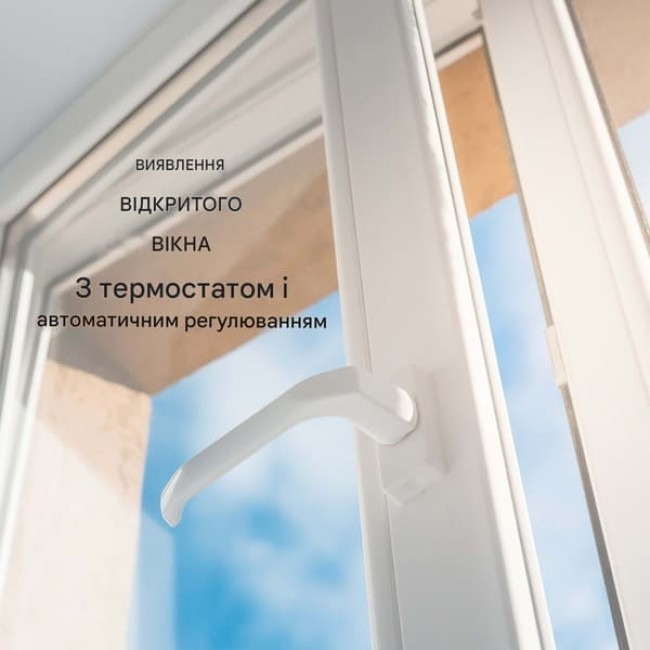- Виявлення відкритого вікна: автоматично вимикається при зниженні температури в приміщенні
