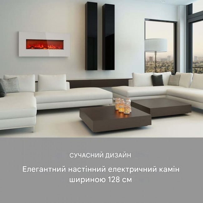Довгий електричний камін Lausanne 1600 Вт 2 режими нагріву 128 см