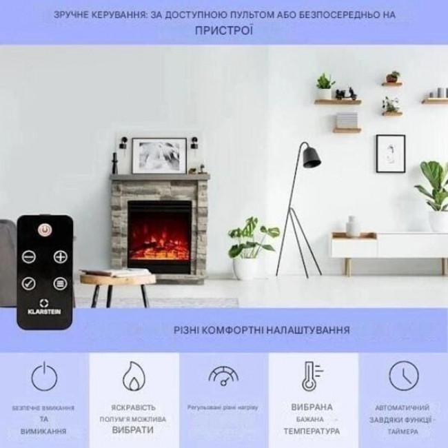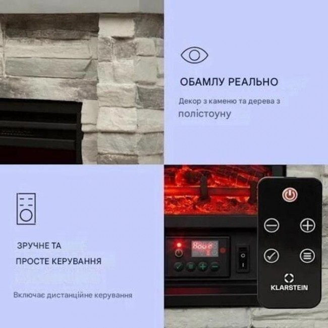 Стильний камін з компактними розмірами без диму та вогню. Завдяки виготовленню з полістоуну елегантний електричний камін Klarstein Lienz надзвичайно схожий на справжній кам’яний камін і створює реалістичні ілюзії полум’я в кожній кімнаті. М’яке світло, що регулюється, імітує сяйво вогню та тліючих полін оманливо справжнім способом і одразу створює затишну романтичну атмосферу. Крім того, камін Lienz оснащений двоступеневою функцією нагріву, що перемикається, і практичним тижневим таймером. Управління здійснюється за допомогою дисплея пристрою або зручно за допомогою дистанційного керування.
