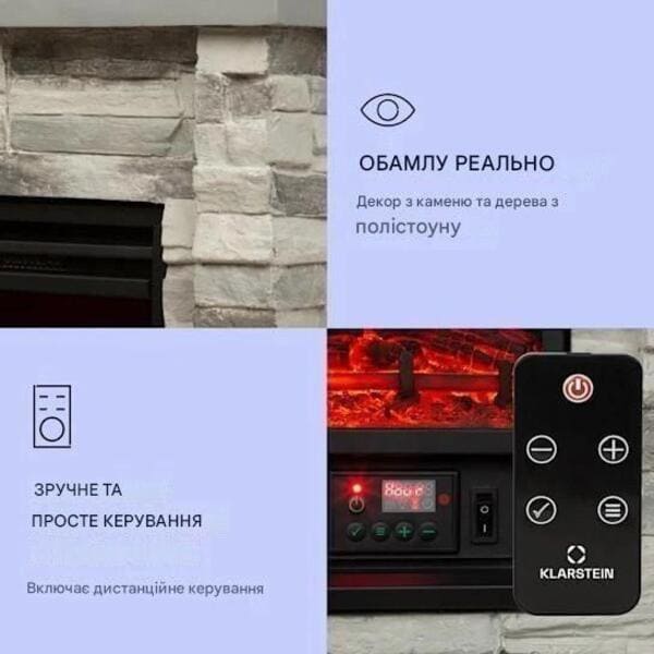 Електрокамін Lienz 1800W кам'яний декор полістоун пульт дистанційного керування