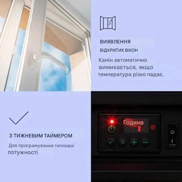 - Розпізнавання відкритого вікна: автоматичне вимикання, якщо температура швидко падає