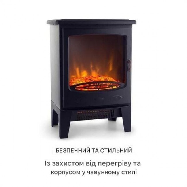 Електричний камін Meran від Klarstein створює реалістичні ілюзії полум'я в кожній кімнаті. М'яке світло імітує полум'я та тліючі поліна оманливо справжнім способом і одразу створює затишну атмосферу. Полум'я блимає абсолютно незалежно від вбудованого опалення. При бажанні перемикається 2-ступенева функція нагріву може забезпечити приємне тепло. Нагрівання можна регулювати за допомогою безступінчастого термостата за допомогою поворотного регулятора. Електрокаміном керувати легко і безпосередньо на пристрої: перемикачі непомітно заховані за дверцятами духовки. Унікальний дизайн каміна Meran в чавунному стилі з великим оглядовим вікном створює затишну атмосферу в будь-якому місці.