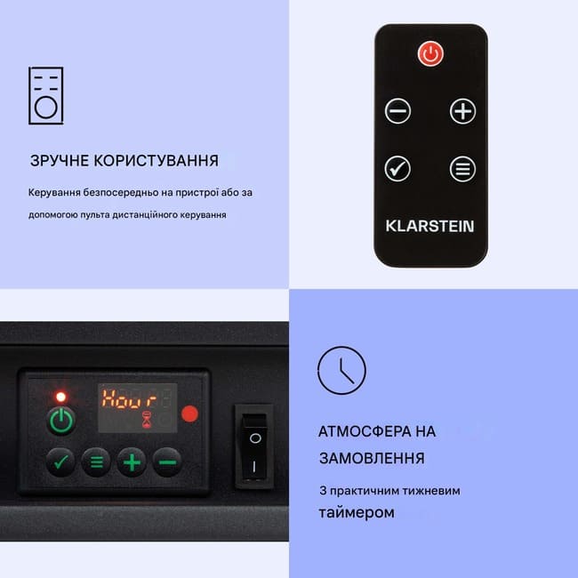 Просте управління: через пульт дистанційного керування або безпосередньо на пристрої
