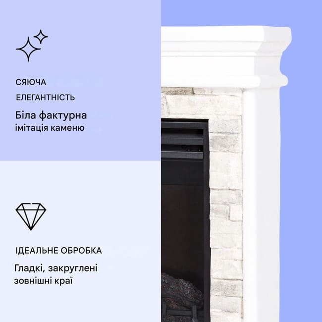 Електрокамін виконаний у вигляді реалістичної імітації каменю з полірезину, що виглядає елегантно та натурально. Завдяки гладким, закругленим краям, цей камін стане стильним доповненням будь-якої кімнати.