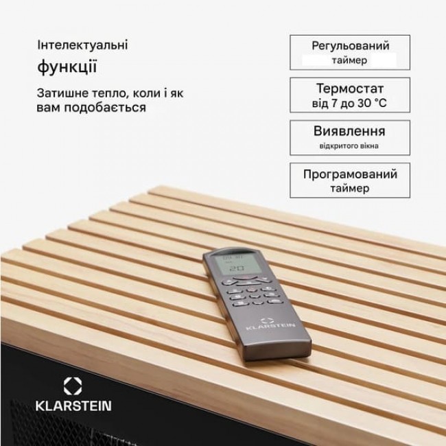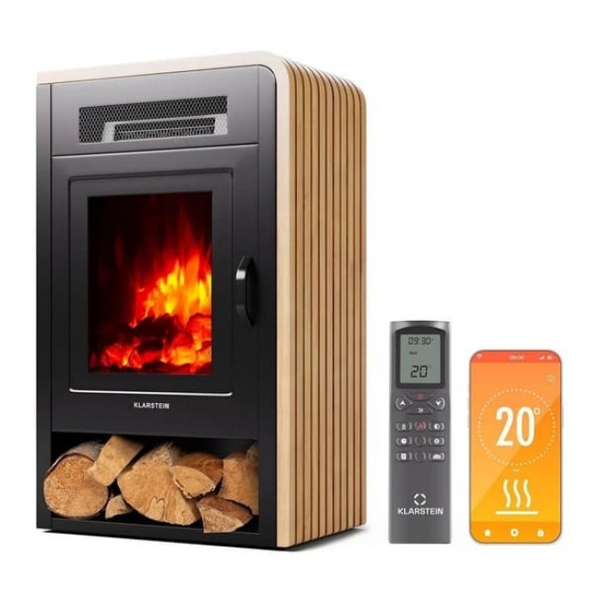 Електрокамін Klarstein Opala створює реалістичні імітації полум'я у будь-якому приміщенні. Лагідне світло імітує полум'я та тліючі поліни і одразу створює затишну, романтичну атмосферу. За бажання можна включити підігрів, який миттєво розподіляє тепло і може працювати на 950 або 1900 Вт. Вбудований термостат вимірює поточну температуру в кімнаті, завдяки функції OpenWindow Detection розпізнає навіть різке зниження температури і автоматично вимикає камін. Додаток Klarstein App Experience пропонує інтелектуальний спосіб опалення: керування одним або декількома радіаторами за допомогою смартфона або планшета, а також програмування тижневого таймера.