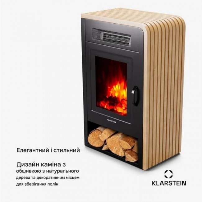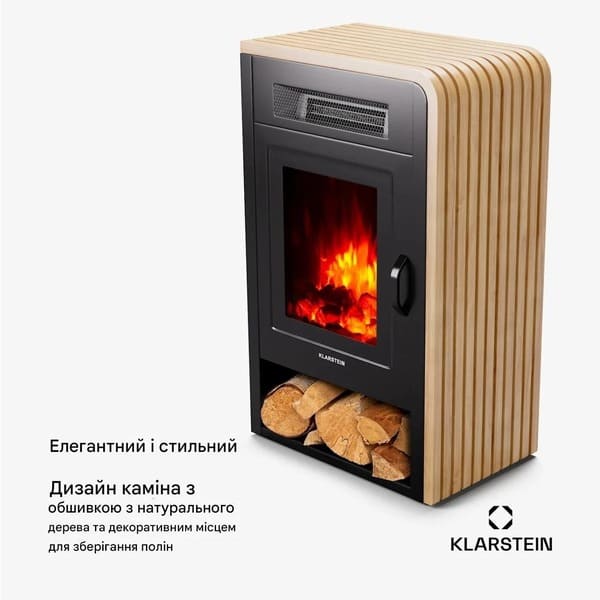 Класичний дизайн каміна Klarstein вражає своєю простотою та елегантністю. Особливою родзинкою, крім інтелектуального управління, є декоративне сховище для полін в основі каміна.