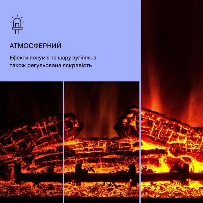 Без вогню та диму: Електричний камін з 2 потужними рівнями нагріву