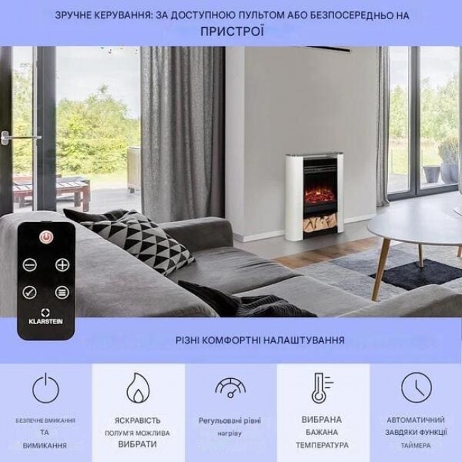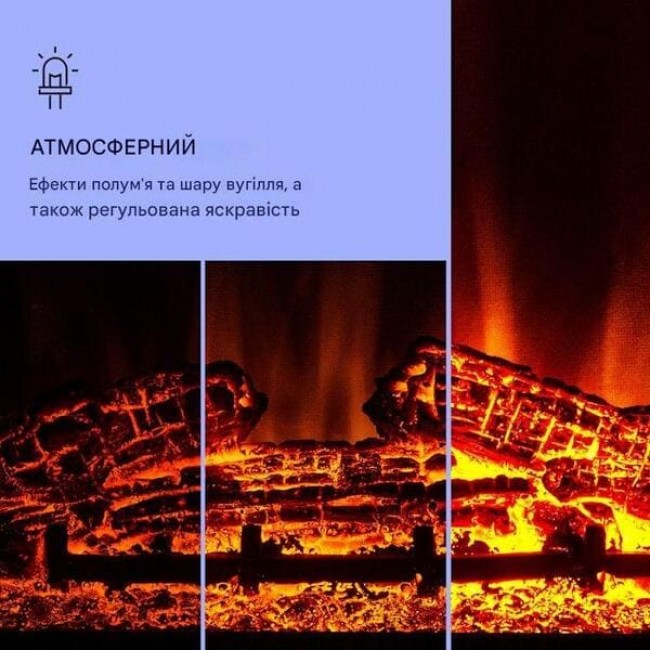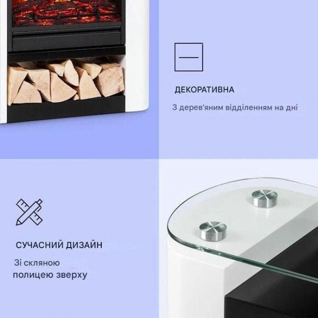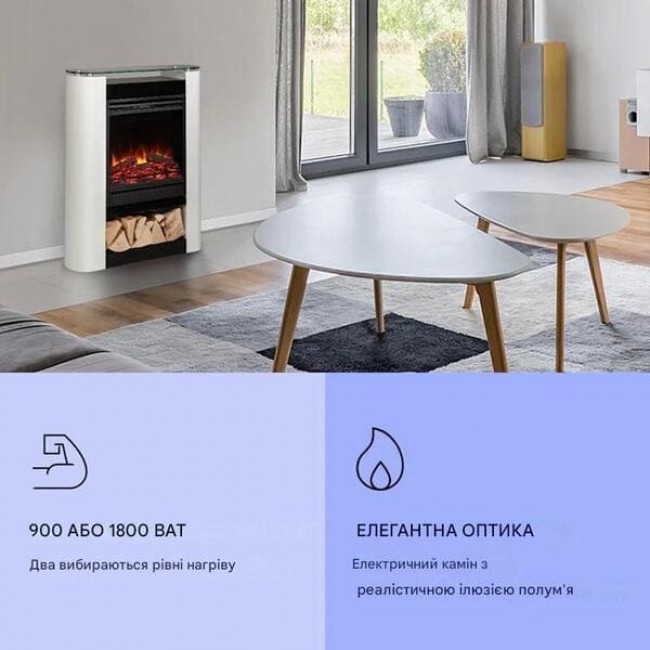 - Електричний камін зі світлодіодним полум'ям та функцією нагріву, що перемикається