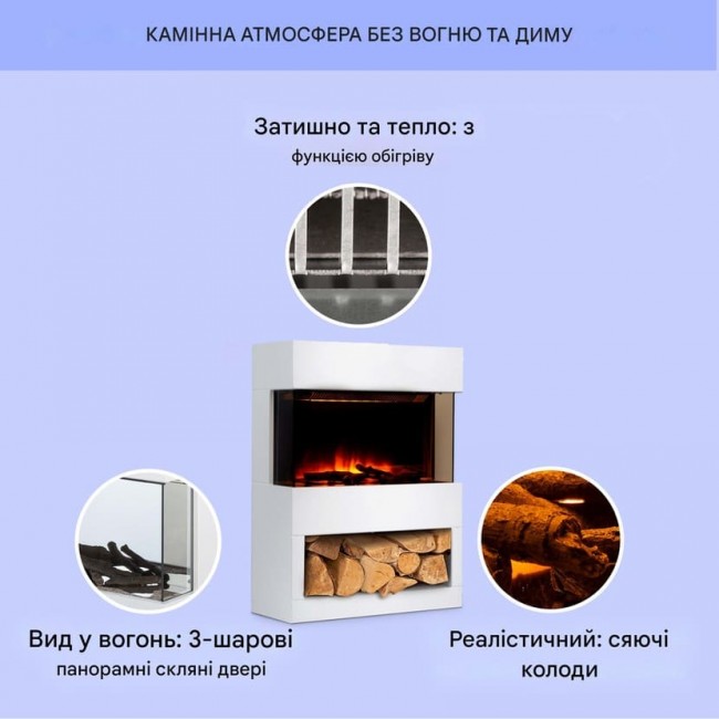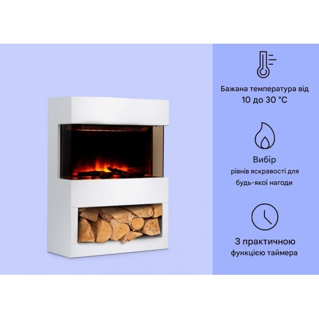 Церматт, електричний камін, 900 / 1800 Вт, ілюзія полум'я, камінна труба, білий