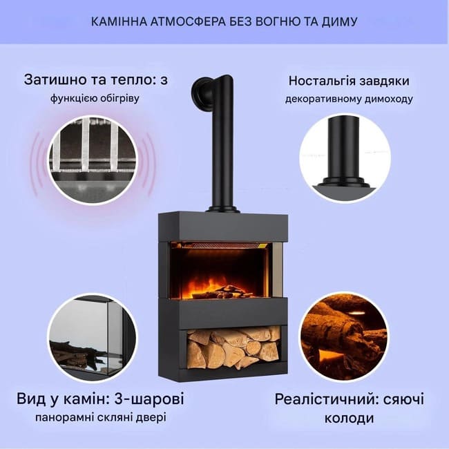 Вірна ілюзія: елегантний електричний камін з ілюзією полум'я та прикріпленою пічною трубою