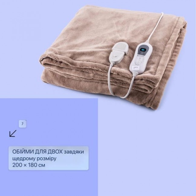 Електрична ковдра Watson XXL 3 рівні, 200x180 см мікроплюш, можна прати