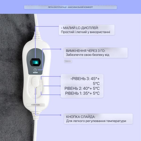 Крім того, Slanket має захист від перегріву та функцію автоматичного відключення, яка вимикає вашу нову улюблену ковдру через 3 години. Тож ви можете без жодних турбот поринути в країну мрій — підходить для тих, хто засинає, читаючи книгу, слухаючи радіоспектакль або дивлячись фільм.