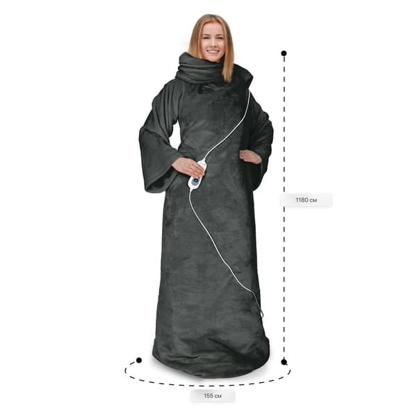 Електроковдра Klarstein Slanket з практичними рукавами підходить для холодних зимових днів або дощової осінньої пори. Не тільки дивовижний м’який кораловий фліс, яким електрична ковдра обіймає ваше тіло, зберігає вам приємність і тепло, а й нагрівальний елемент потужністю 120 Вт, який ви можете легко регулювати на трьох рівнях. З Slanket у холоду та дискомфорту немає жодного шансу, тому що його значні розміри 155 х 180 см і рукави довжиною 60 см зберігають вам приємність і тепло, а ваші руки вільні. Незалежно від того, чи хочете ви читати книгу з комфортом або користуватися смартфоном чи планшетом – із Slanket усе це не проблема. Щоб комфорт зберігався протягом тривалого часу, ви можете зняти панель керування та випрати ковдру в пральній машині при 30 °C.