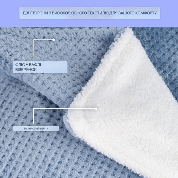 • Дві сторони: неймовірно м'який фліс шерпа та фліс бейбей у вафельному малюнку