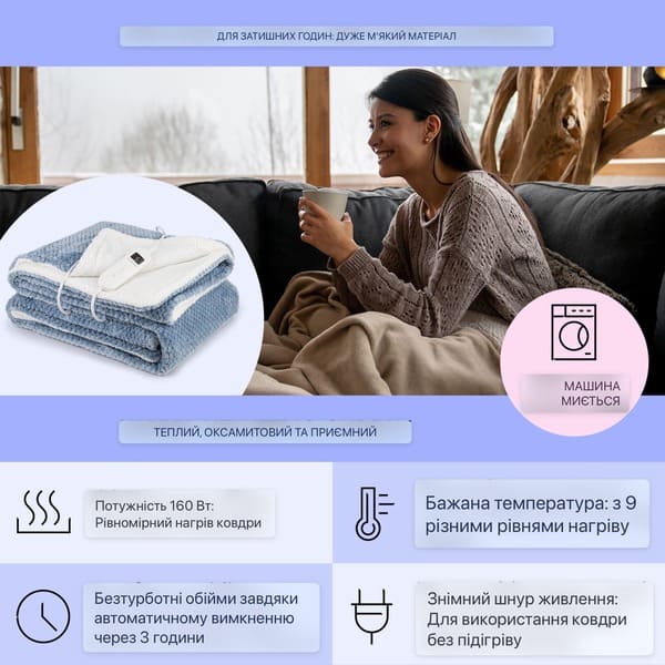 • Затишно і тепло: електрична ковдра потужністю 160 Вт