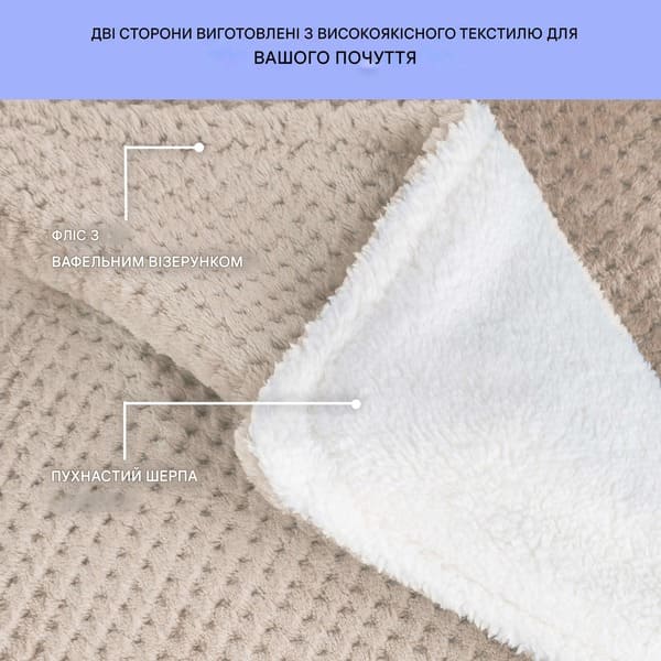 - Дві сторони: неймовірно м'який фліс шерпа та фліс бейбей у вафельному малюнку