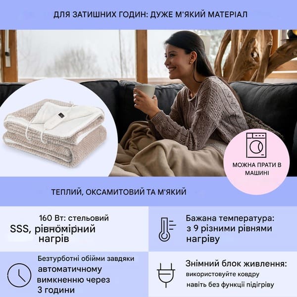 - Затишно і тепло: електрична ковдра потужністю 160 Вт