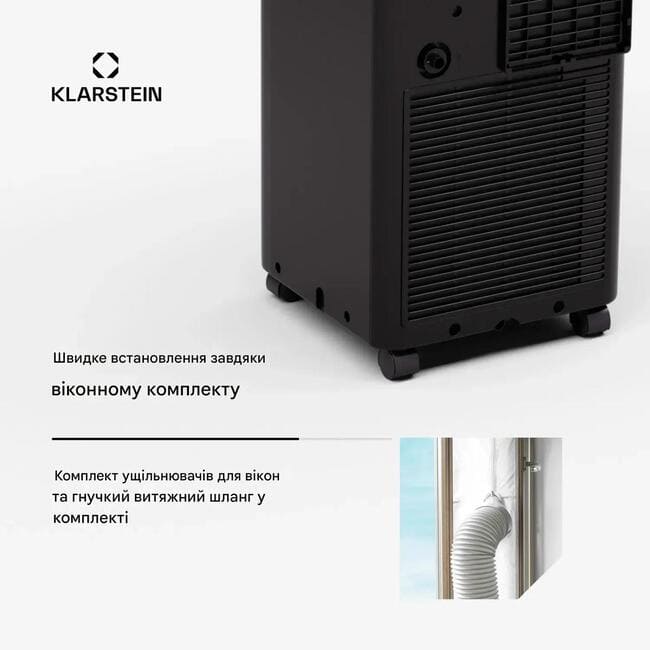 Мобільний кондиціонер від Klarstein полегшить ваше життя. Оснащений простим у встановленні витяжним шлангом, його можна без зусиль використовувати в будь-якому приміщенні. Плавнохідні підлогові ролики також забезпечують повну мобільність. Це означає, що кондиціонер може без зусиль працювати на кухні, у вітальні або навіть у спальні.