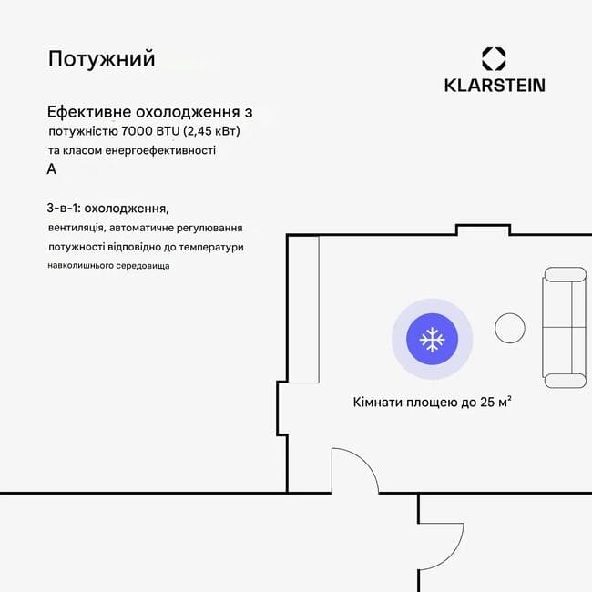 - Споживана потужність: 7000 BTU/2,45 кВт