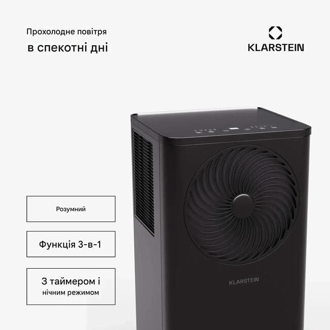Але кондиціонер Klarstein підходить не лише для швидкого охолодження повітря . Завдяки трьом потужним режимам, кондиціонер також можна використовувати як осушувач повітря та вентилятор. Ним можна зручно керувати за допомогою пульта дистанційного керування, інтуїтивно зрозуміло через сенсорну панель керування або розумно через додаток. Ще однією родзинкою є голосове керування через Alexa або Google Voice Assistant. Одного слова достатньо, щоб насолодитися прохолодним вітерцем.