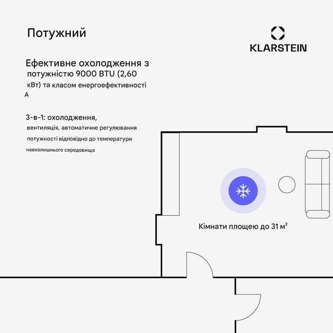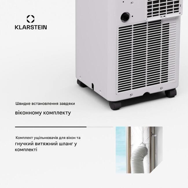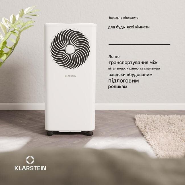 Мобільний кондиціонер від Klarstein полегшить ваше життя. Оснащений простим у встановленні витяжним шлангом, його можна без зусиль використовувати в будь-якому приміщенні. Плавнохідні підлогові ролики також забезпечують повну мобільність. Це означає, що кондиціонер може без зусиль працювати на кухні, у вітальні або навіть у спальні.