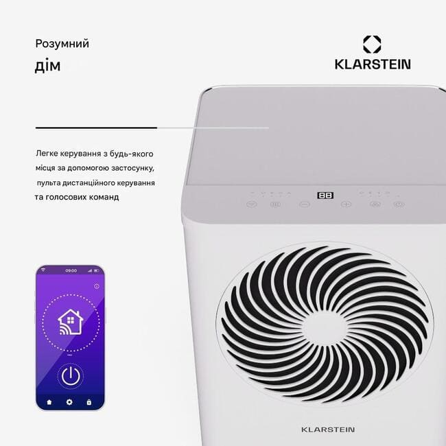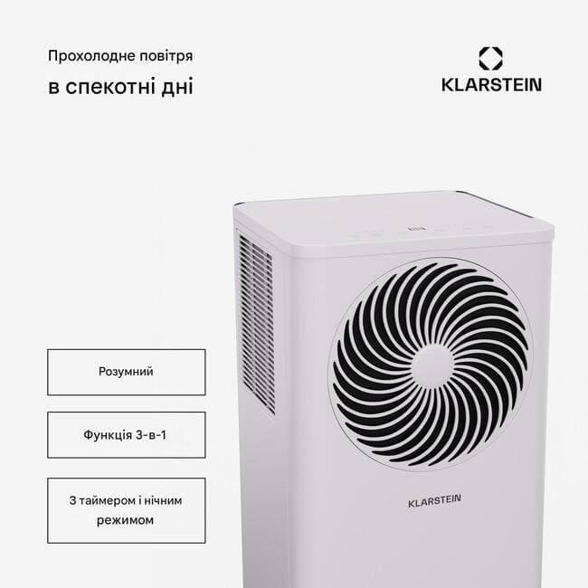 Але кондиціонер Klarstein підходить не лише для швидкого охолодження повітря . Завдяки трьом потужним режимам, кондиціонер також можна використовувати як осушувач повітря та вентилятор. Ним можна зручно керувати за допомогою пульта дистанційного керування, інтуїтивно зрозуміло через сенсорну панель керування або розумно через додаток. Ще однією родзинкою є голосове керування через Alexa або Google Voice Assistant. Одного слова достатньо, щоб насолодитися прохолодним вітерцем.