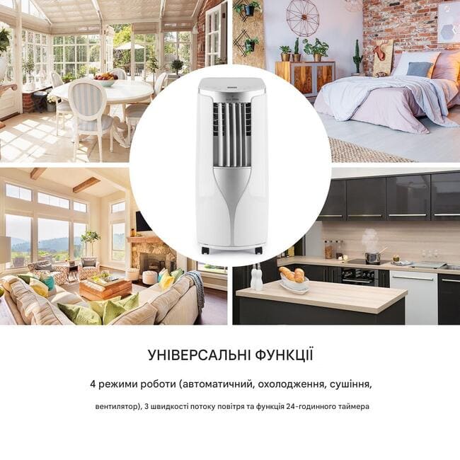 - 3 режими роботи: охолодження, осушення та вентилятор