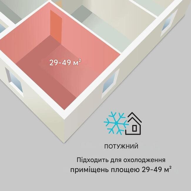 • Потужний: для приміщень площею 29-49 м²
