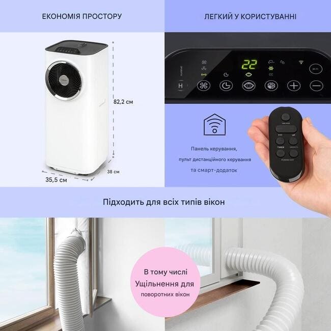 - Легко керувати: сенсорна панель на пристрої, додаток або пульт дистанційного керування