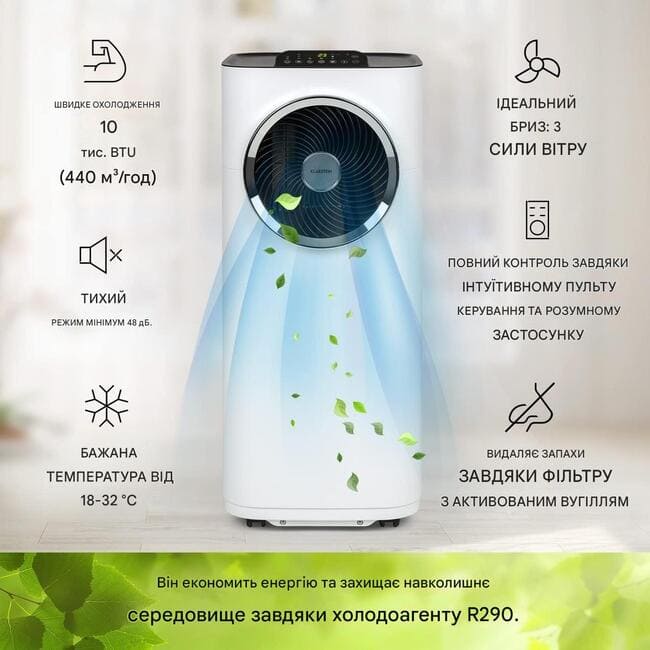 - Потужність охолодження: 10 000 BTU (2,9 кВт)