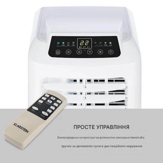 Система кондиціонування повітря Klarstein Pure Blizzard Smart 9k забезпечує чисте, охолоджене повітря в приміщенні в спекотні літні дні, а завдяки вентилятору та осушувачу забезпечує приємний клімат у приміщенні в будь-який час. Пристрій може похвалитися потужним, але економічним компресором для охолодження повітря. Потужність охолодження 9000 BTU / 2,6 кВт або відповідні 1010 Вт споживаної потужності забезпечують клас енергоефективності A Pure Blizzard Smart 9k і роблять його придатним пристроєм безперервної роботи для приміщень розміром 25 м². Виберіть цільову температуру від 17 до 30 °C і зручно керуйте своїм кондиціонером на колесах за допомогою програми Klarstein на смартфоні, за допомогою пульта дистанційного керування або вручну на верхній панелі керування. Функція таймера дозволяє повертатися додому в охолоджену кімнату в заздалегідь запрограмованому порядку.