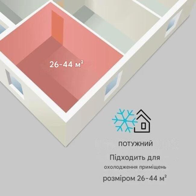 - Потужність охолодження: 9000 BTU / 2,6 кВт