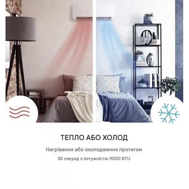 - Нагрівання або охолодження: нагрівання або охолодження протягом 30 секунд з 9000 BTU/2,7 кВт