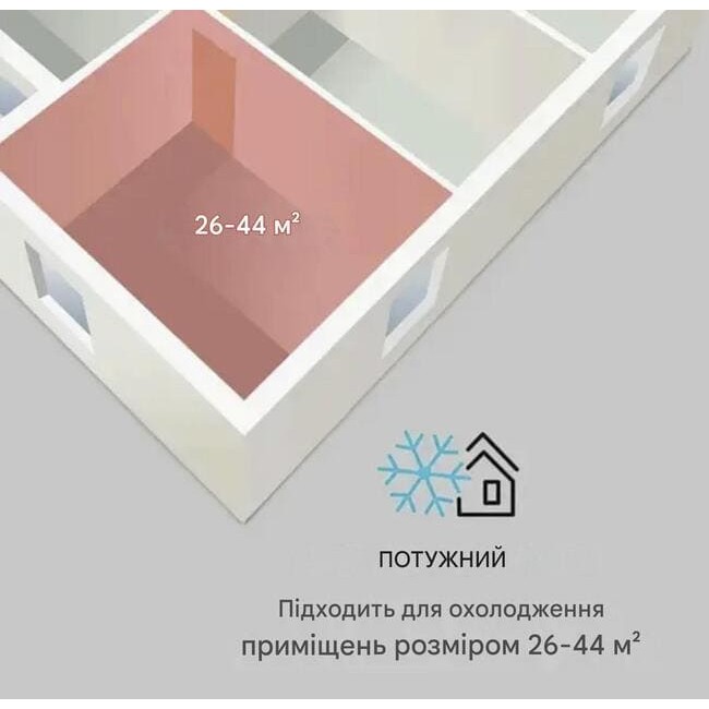 - Рекомендований розмір кімнати: підходить для кімнат площею 26-44 м²