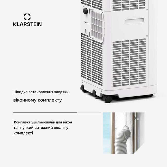Комплект ущільнювачів окон та витяжний шланг для повітряного охолодження.