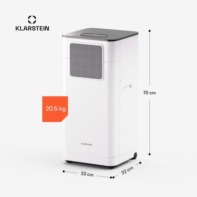Klarstein Breeze Box 7K – це екологічно чистий та енергоефективний кондиціонер класу А. Він вражає своєю стійкою та ефективною роботою з використанням екологічно чистого холодоагенту R290. Установка проста, а завдяки практичним колесам пристрій можна легко переносити з кімнати до кімнати. У комплект поставки входить витяжний шланг та комплект ущільнювачів вікон, що забезпечує нескладне встановлення.