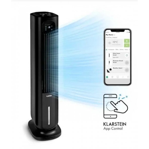 Завдяки підключенню до Wi-Fi, пристроєм можна легко керувати через додаток Klarstein App зі смартфона або iPhone, незалежно від вашого місцезнаходження. Також доступне управління через сенсорну панель або пульт дистанційного керування. Ви зможете налаштувати оптимальний режим: 4 швидкості обдуву, автоматичний поворот жалюзі, таймер до 24 годин.
