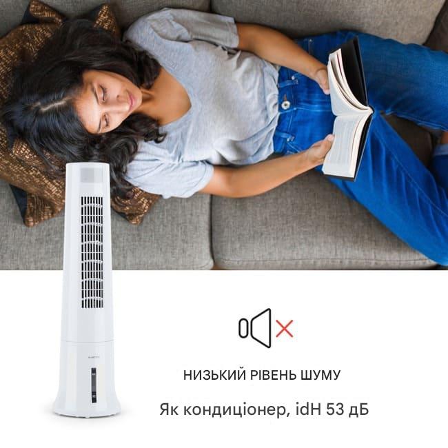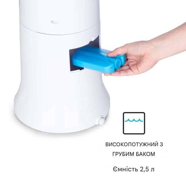 Зверніть увагу, що цей пристрій є не кондиціонером у загальноприйнятому значенні цього слова, а охолоджувачем повітря. Охолодження повітря від вентилятора досягається за рахунок випаровування води з 2,5-літрового резервуару для води.