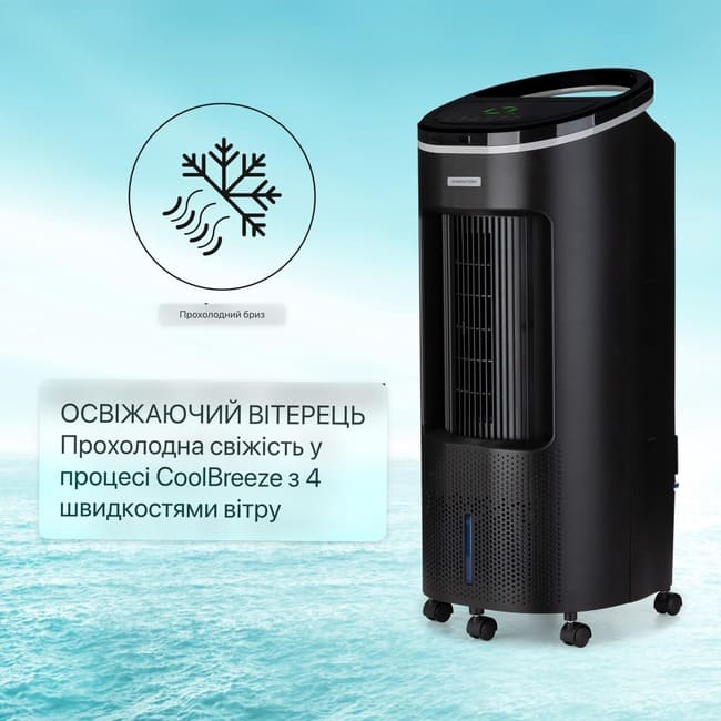 • 4-в-1: охолоджувач повітря, вентилятор, зволожувач і очищувач повітря