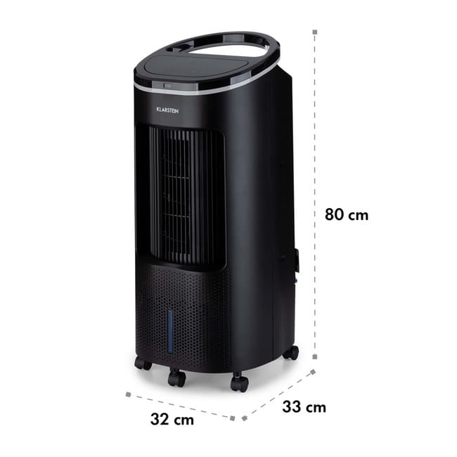 Чотири різні швидкості вітру та 3 режими роботи забезпечують точне освіження як вентилятор. Коливання, що перемикаються, подає свіже повітря більш ніж одній людині, коливаючи ламелі вліво-вправо. Якщо потім використовується повітряний охолоджувач, охолодження є порядком дня для кожної діяльності. Два змінні холодові пакети для резервуара для води можуть ще більше посилити цей ефект. Управляється за допомогою сенсорної панелі управління або зручно за допомогою пульта дистанційного керування.