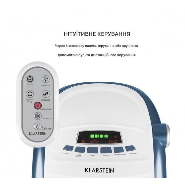 Особливо ефективний, коли йдеться про збереження прохолоди. Сприятливий повітряний потік можна регулювати відповідно до індивідуальних побажань за допомогою панелі керування або дистанційного керування. Чотири швидкості вітру, перемикання горизонтальних коливань і таймер вимкнення, який можна встановити на годину до 15 годин, дозволяють точно налаштувати відповідні потреби в освіженні. Крім того, Klarstein Maxfresh Ocean має три різних режими роботи. На додаток до звичайного режиму, режим природи імітує підйом і спад вітру. Нічний режим працює за аналогічним принципом, але поступово знижує максимальну швидкість вітру, поки пристрій остаточно не перестане працювати.