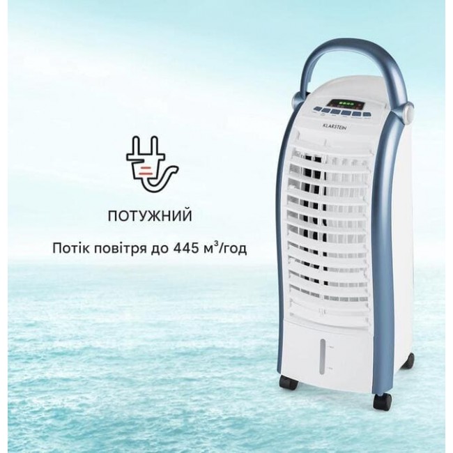 Безмежно освіжаючий, завдяки розкладній ручці та вбудованим підлоговим роликам, повітряний охолоджувач Klarstein Maxfresh Ocean абсолютно мобільний і виконує свою роботу там, де найбільше потрібен прохолодний вітерець.