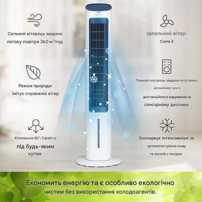 - 4-в-1: охолоджувач повітря, вентилятор, зволожувач і очищувач повітря