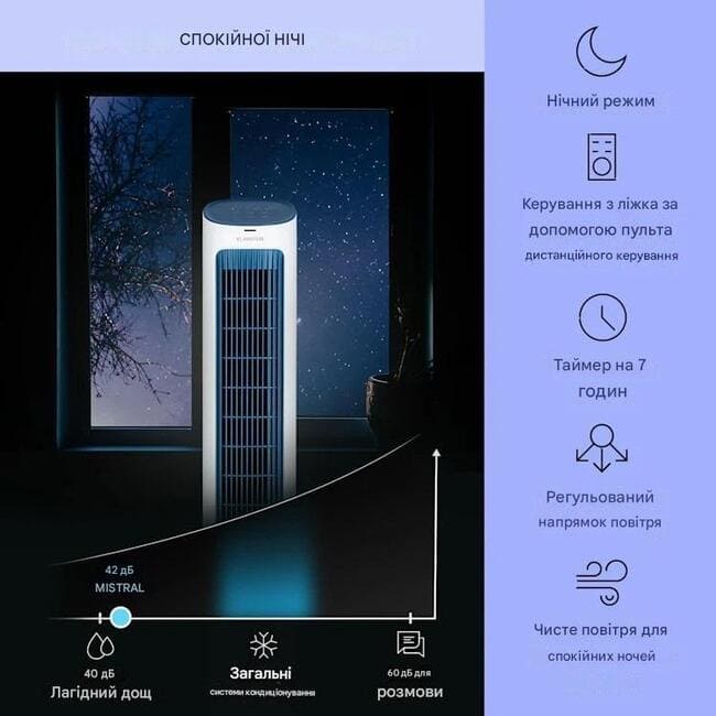 Повітроохолоджувач Mistral 5 в 1 вентилятор іонізатор 360 м³/год дистанційне керування