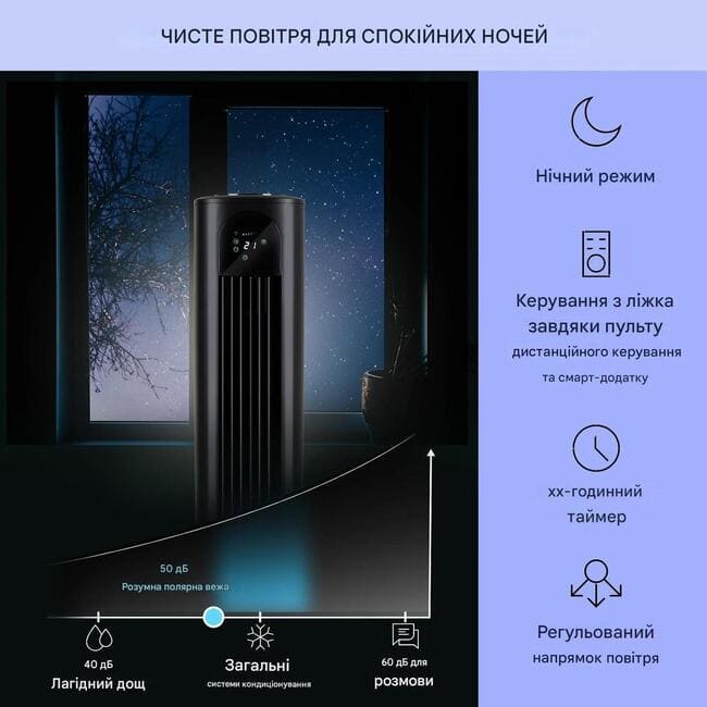 Ще одна перевага — функція іонізації, що допомагає усунути пил та неприємні запахи. Це дозволяє насолоджуватись не лише прохолодним, а й чистим повітрям.