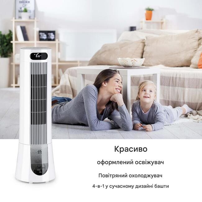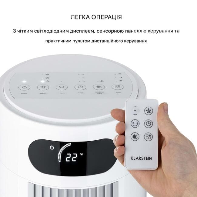 Чотирикратне освіження: повітроохолоджувач Klarstein Skyscraper Frost забезпечує вас прохолодним бризом як вентилятор, охолоджувач повітря, очищувач повітря та зволожувач.