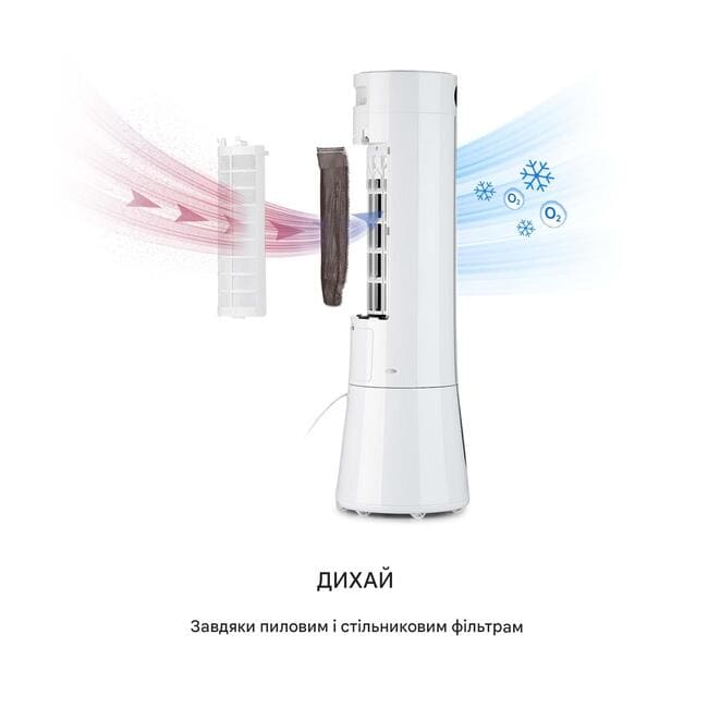 - Охолоджувач повітря: вода випаровується через стільниковий фільтр і забирає тепло з повітря, що протікає через нього, природним і надзвичайно енергозберігаючим способом