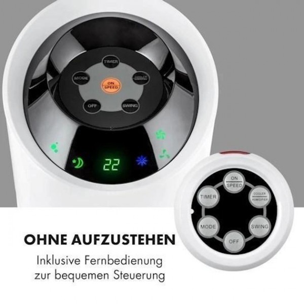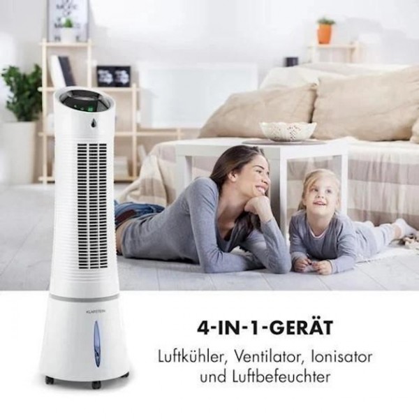 Чотирикратне освіження завдяки стильній вентиляційній вежі: повітроохолоджувач Klarstein Skyscraper Ice 4-в-1 забезпечує вас прохолодним бризом із надзвичайною точністю. Як вентилятор, охолоджувач повітря, очищувач і зволожувач повітря.